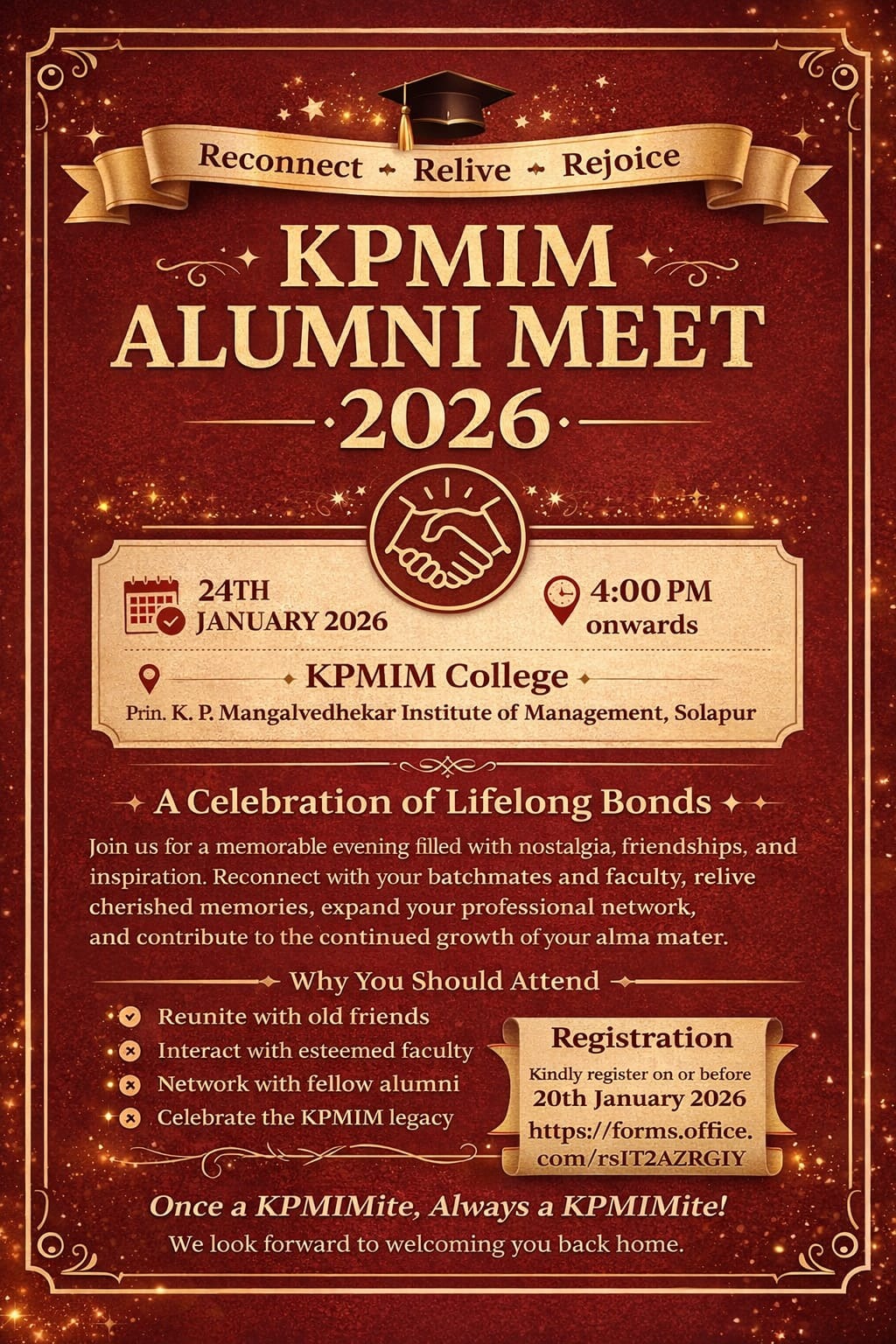 Prin.K.P.Mangalvedhekar Institute of Management Career Development and Research is celebrating 28 year's of its glory in the field of technical education. On this occasion, let's ignite the memories of this journey of our institute. The visionary man Hon. Late GSGSGS always thought about the bright future of youth residing in the rural area and knew very well that students of rural area do not have technical education facilities and it was a serious problem during those early days and decided to establish the institute to provide a technical education. In year 1998, the first brick of MIM was laid.